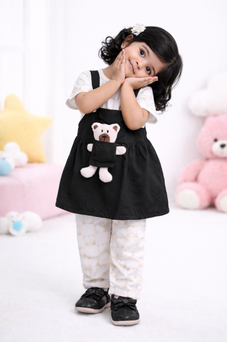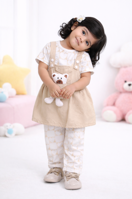 Girls 3 Piece Pinafore Set with Bear Toy ( 1 to 4 ) years