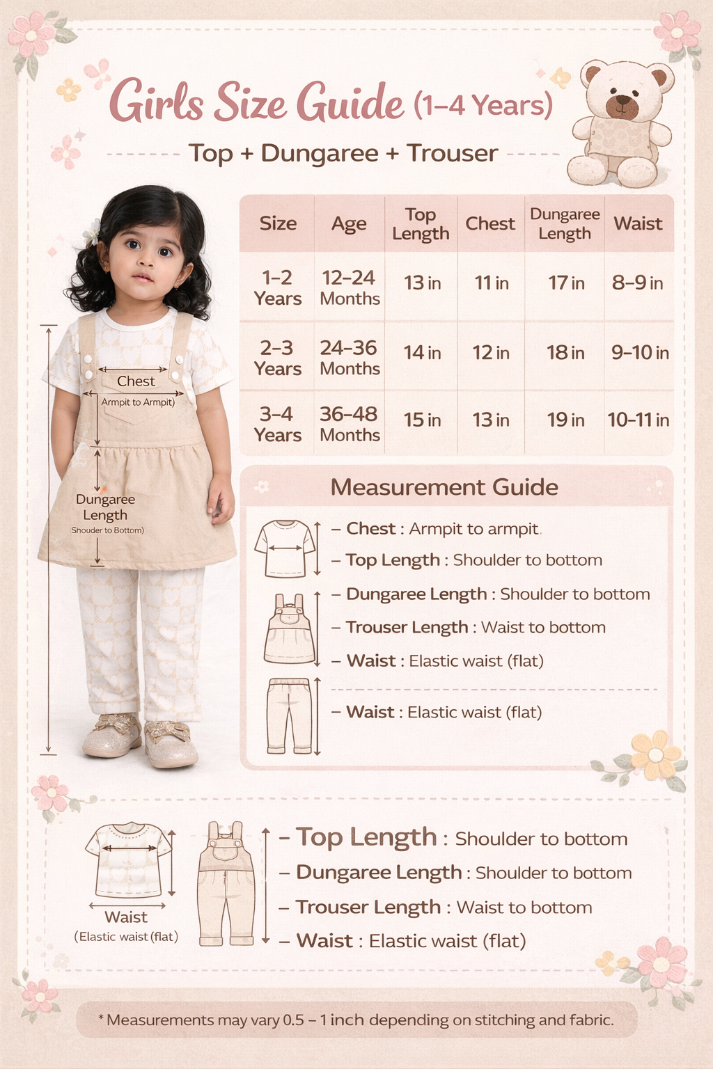 - Girls 3 Piece Pinafore Set with Bear Toy ( 1 to 4 ) years